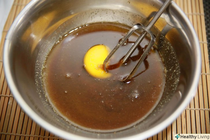 Розтопіть масло до золотисто-коричневого кольору.розтопіть масло в невеликій сковороді. Найкраще, щоб сковорода була світлого кольору, щоб ви могли бачити колір масла. Постійно помішуйте розтоплене масло, а як тільки воно стане золотисто-коричневого кольору, негайно перелийте його у велику порожню миску. Розтоплення масла дозволяє отримати тягучу жувальну консистенцію печива, а доведення масла до коричневого кольору робить смак печива більш насиченим.[15]- Можливо, розтопити тільки половину масла буде зручніше, так як меншу кількість масла легше контролювати.