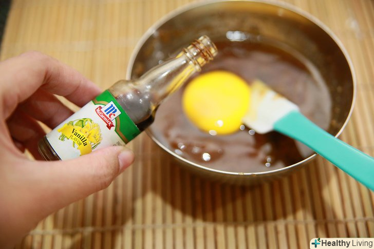 Змішайте яйця і ванільний екстракт.ретельно змішайте яйця і ванільний екстракт (або ванілін), а потім додайте суміш в масло і теж ретельно перемішайте, щоб вийшла однорідна маса.- Щоб зробити печиво ще більш тягучим (не зменшуючи його легкість), розділіть білок і жовток яйця перш, ніж додавати їх в тісто.[7]