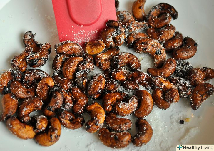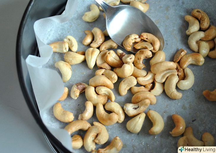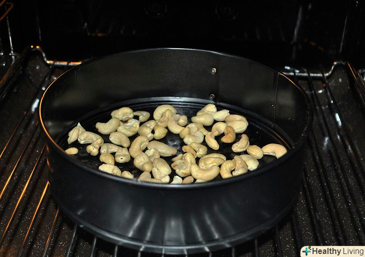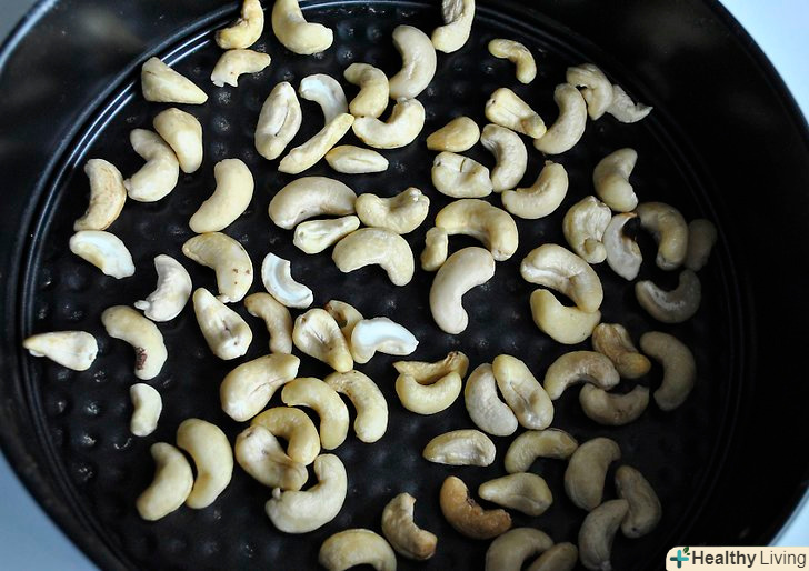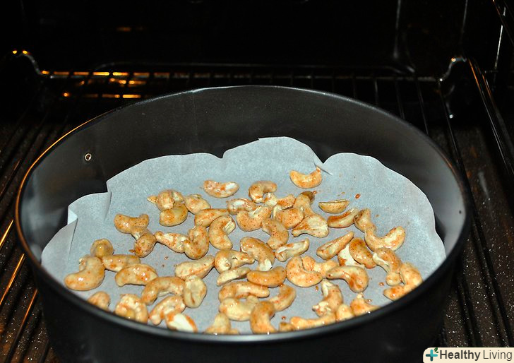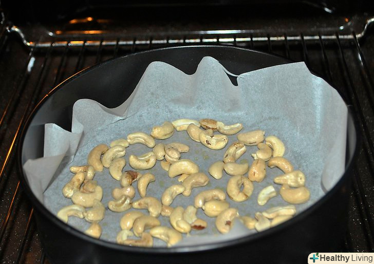 - Кешью можна обсмажити в маслі або без нього. Якщо обсмажуєте кешью без масла, але хочете підсолити, то перед відправкою в духовку обприскати горіхи розчином солі, а потім просушіть. Так сіль вбереться в горіхи.[2]