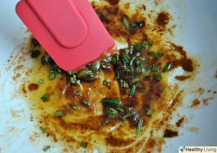 Змішайте приправу.поки кешью обсмажуються, змішайте у великій мисці розмарин, кайенский перець, цукор, сіль і масло. Відставте соус в сторону.- Можна повністю виключити кайенский перець, якщо ви не любите гостру їжу.