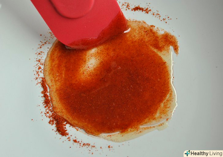 Змішайте мед і кайенский перець.ретельно перемішайте два інгредієнти у великій мисці, поки не отримаєте однорідну суміш.- Якщо мед занадто густий, поставте його на п'ять секунд в мікрохвильову піч. Після цього буде простіше змішати між собою обидва компоненти.[9]