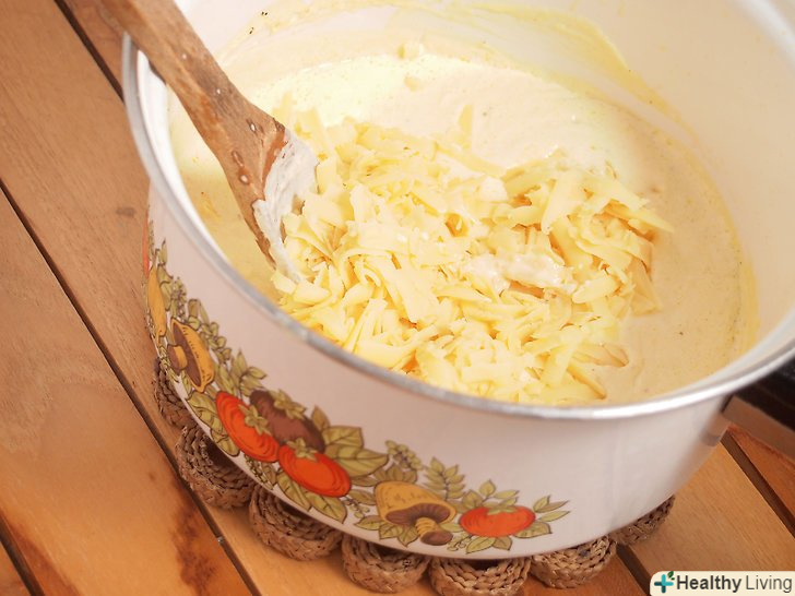 Зніміть каструлю з вогню.це важливо зробити, перш ніж ви додасте сир, так як якщо ви залишите суміш на вогні, сир може утворити грудки або стати тягучим.