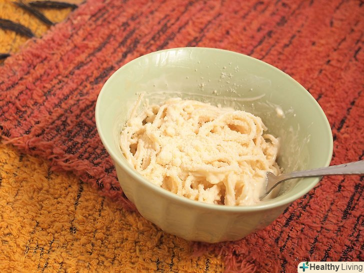 Змішайте теплий соус з макаронами.найпопулярніша страва з цим соусом це Феттучіні альфредо. Тим не менш, ви можете використовувати будь-який тип макаронних виробів, який вам подобається.