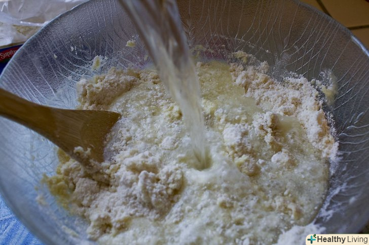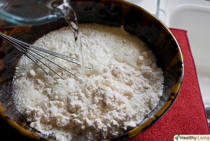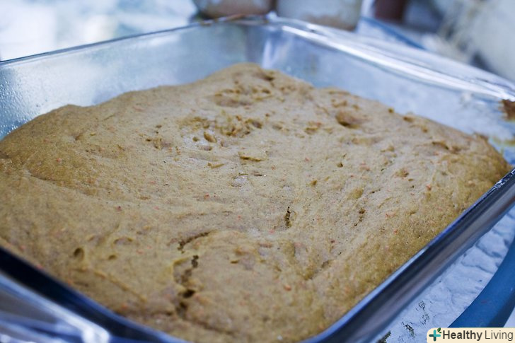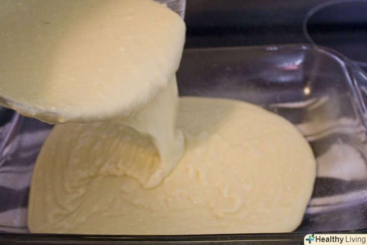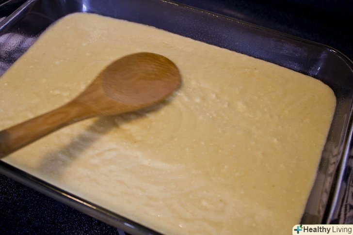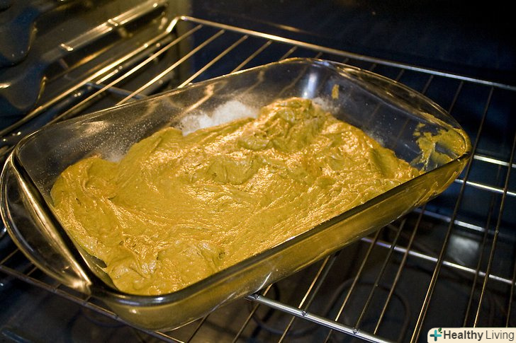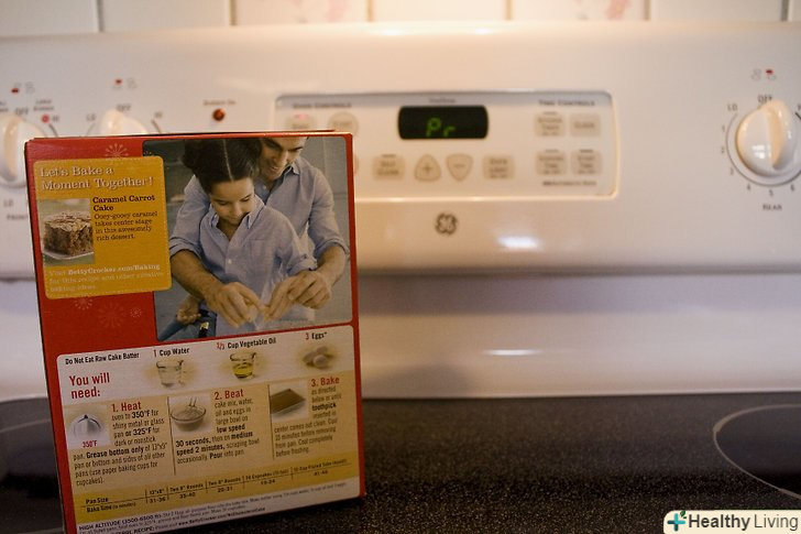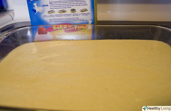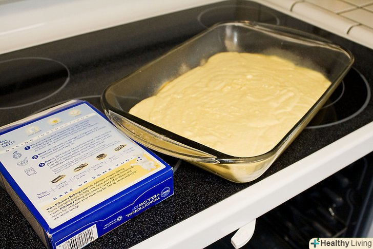 Промажте деко маслом або посипте борошном.Розігрійте духовку до температури, зазначеної на пачці суміші для пирога.- Покладіть суміш для пирога в невелику миску.