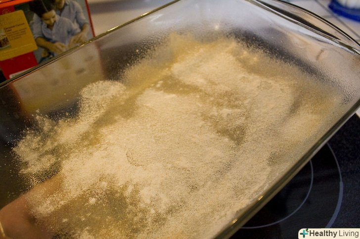 Акуратно посипте борошном так, щоб дно і бічні частини дека були покриті повністю.