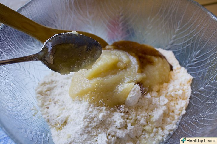 Додайте оцет, ваніль і яблучне пюре і змішайте всі інгредієнти разом.