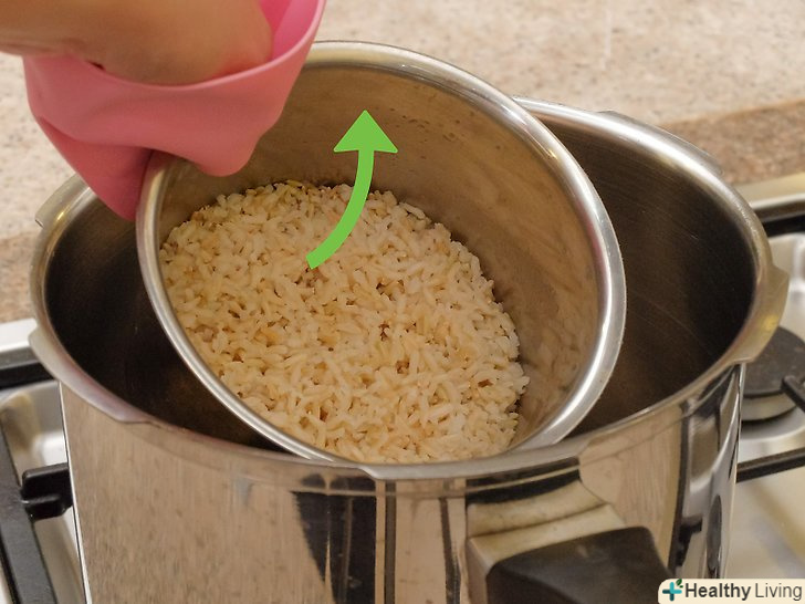 - Зменшіть вогонь, як тільки тиск підвищиться до необхідного рівня, інакше рис швидко перетравиться.[3]