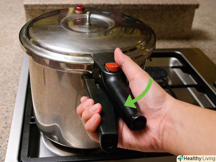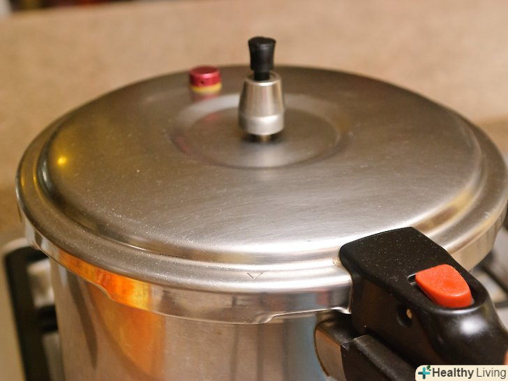 Підніміть тиск.Увімкніть пальник на повний вогонь, поки індикатор скороварки не досягне шкали високого тиску, а потім зменшіть полум'я, щоб підтримувати цей тиск протягом трьох хвилин. Ознайомтеся з керівництвом по експлуатації, щоб дізнатися про те, як правильно зчитувати показання тиску.- Якщо у вас електрична скороварка, то в такому випадку слід встановити високий тиск на три хвилини. Щоб досягти необхідного тиску, скороварці знадобиться всього кілька хвилин, а потім вона приступить до гасіння страви, яке займе три хвилини.[2]