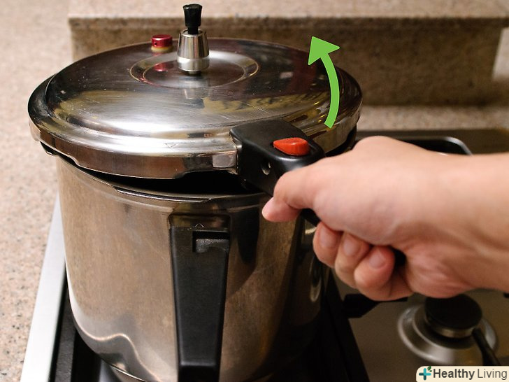 - По закінченню 15 хвилин зніміть скороварку з вогню і зробіть швидке скидання тиску. Зніміть кришку, попередньо нахиливши каструлю від себе, щоб не обпектися гарячою парою.[11]