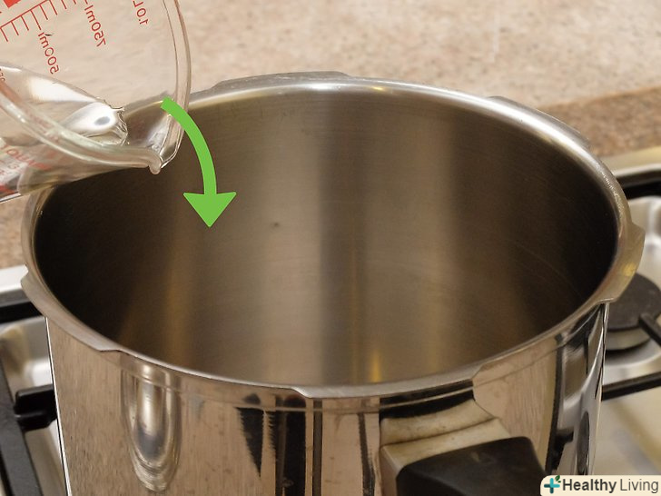 Налийте в скороварку воду.влийте в скороварку то мінімальна кількість води або іншої рідини, яке необхідно для підтримки тиску в каструлі. Потім поставте на її дно парову корзину або іншу підставку для варіння.- Крім того, візьміть таган і підкладіть його під миску або каструлю, яку ставите в скороварку.