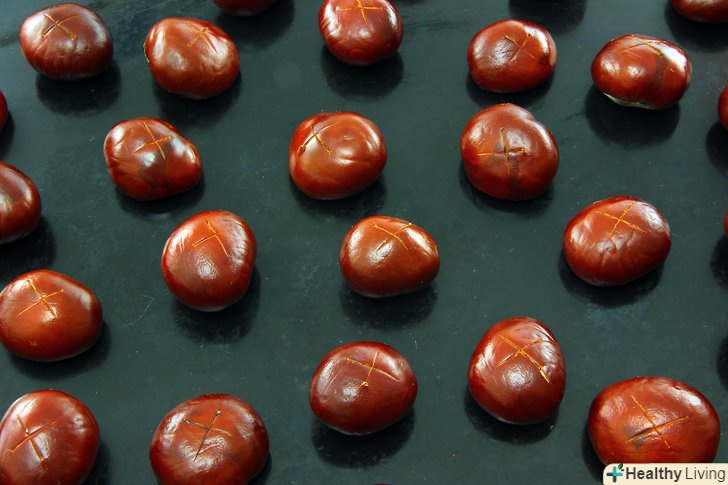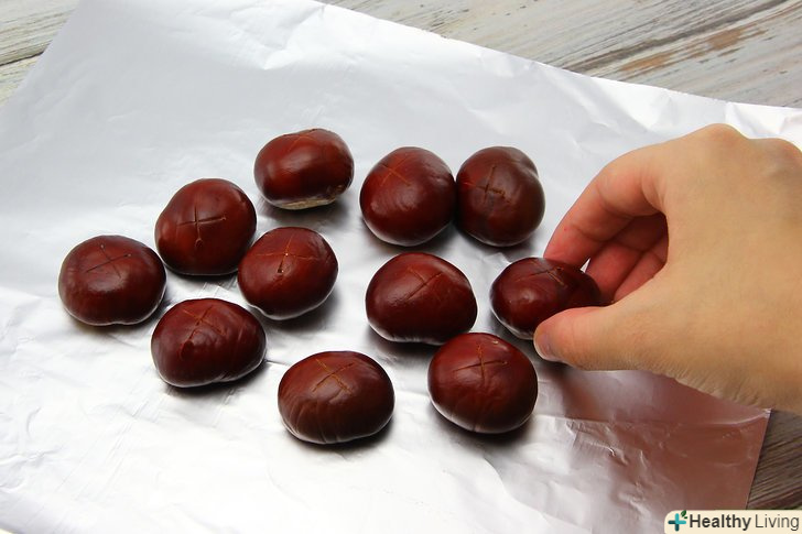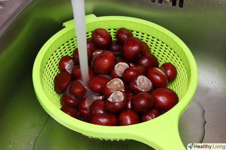 Вимийте каштани.промийте каштани чистою водою, щоб видалити пил, який міг потрапити на шкаралупу. Багато хто вважає, що вимиті горіхи потрібно обсушити, але цілком можна обійтися і без цього.