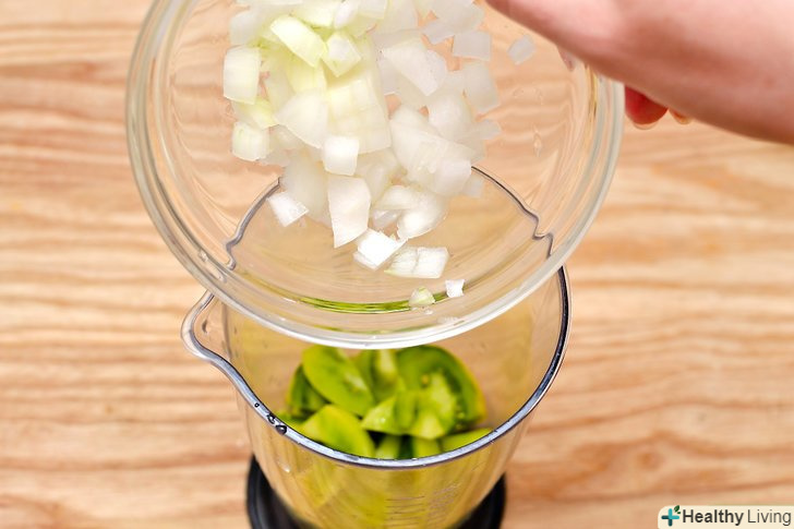 Підготуйте зелені помідори.видаліть листочки і промийте зелені помідори в холодній воді. Наріжте помідори і покладіть в блендер.