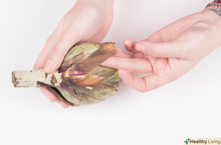 Перевірте листя.у свіжого артишоку повинні бути міцні яскраво-зелене листя. Мляві або сухе листя означають, що артишок вже несвіжий.[11]- Притисніть листя один до одного. Якщо ви почуєте скрип, значить, артишок хорошої якості.