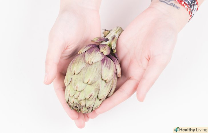 Відчуйте вагу і зверніть увагу на форму артишоку.він повинен бути округлої форми і бути важче, ніж здається.- Невеликі артишоки, як правило, набагато м'якше. У більш круглих артишоків серцевина буде набагато більше, ніж у вузьких овочів.[12]