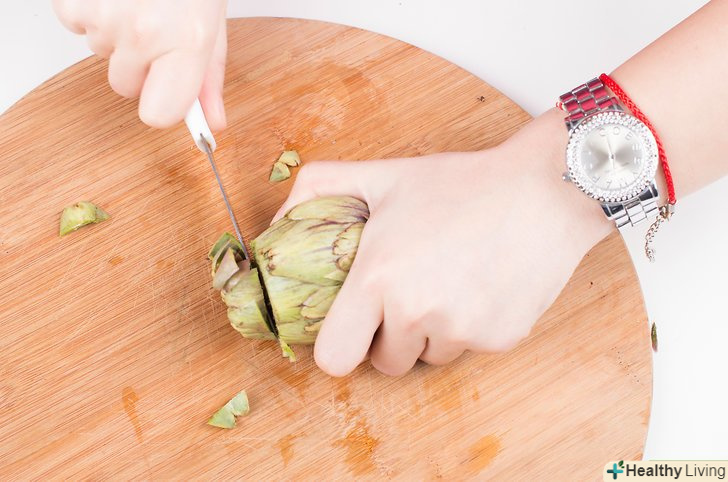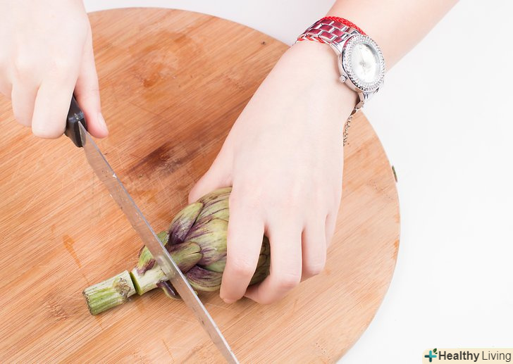- Стебло артишоку їстівний, так що відріжте тільки його кінець, а потім зваріть його разом з іншою частиною артишоку.[3]