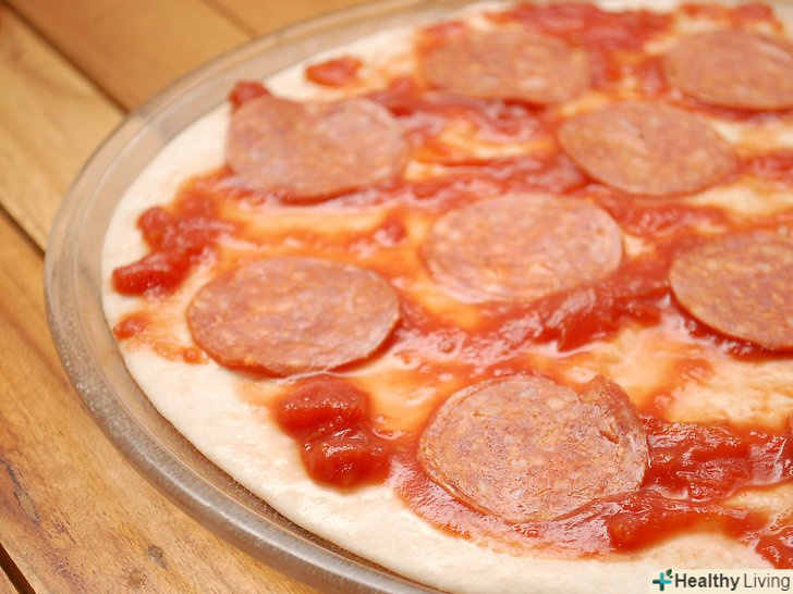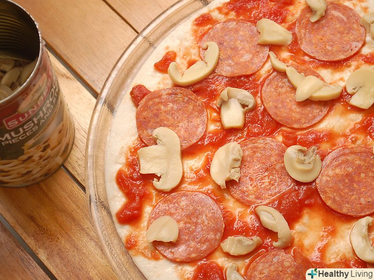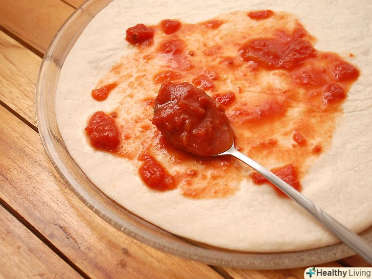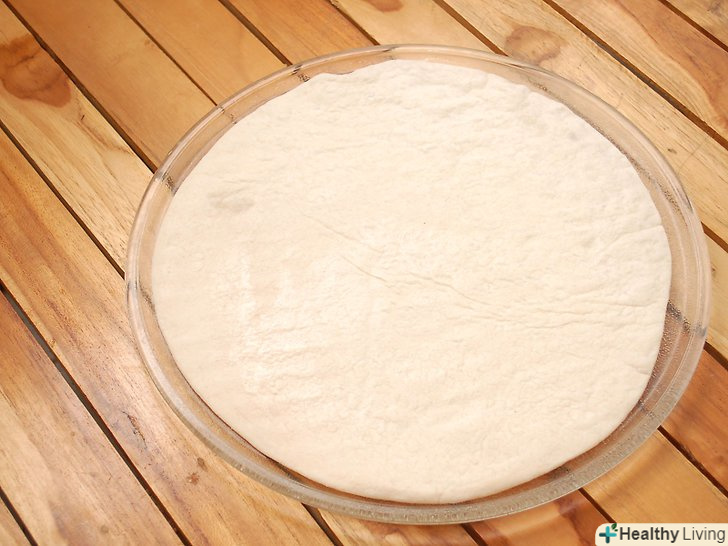 Приготуйте тісто для піци.розкачайте тісто і покладіть його в форму для піци.- Якщо у вас не антипригарна форма, то змастіть її рослинним маслом або розпорошите кулінарний спрей. Так ваша піца не прилипне до форми.