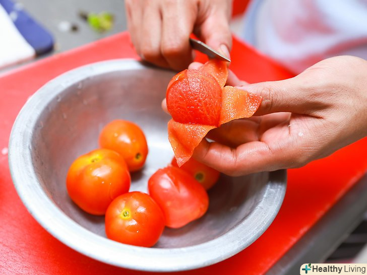 Очистіть помідори.- Зробіть невеликий надріз у формі хреста на підставі кожного помідора.