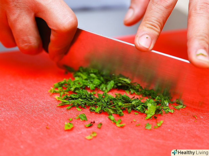 Наріжте свіжу петрушку, базилік, м'яту, кервель і естрагон.