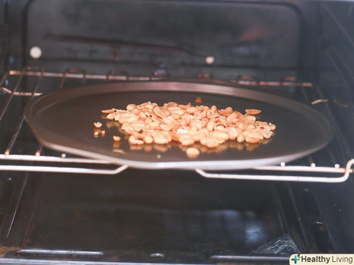 Обсмажте арахіс (за бажанням).деякі вважають за краще обсмажувати арахіс перед приготуванням арахісового масла, щоб вони стали більш хрусткими, з ароматом обсмажування. Це не займе багато часу, тому вирішуйте самі, обсмажувати або не обсмажувати арахіс. Ви також можете купити вже обсмажені горіхи. Якщо ви все ж вирішите їх обсмажити, ось що вам треба зробити:[2]- Складіть горіхи в миску і злегка перемішайте їх з арахісовим або рослинним маслом.