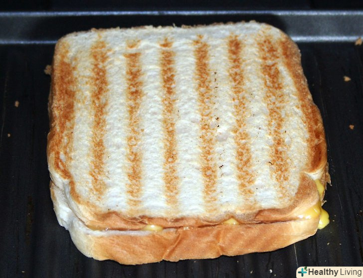 Оскільки гриль фактично готує з обох сторін, не займе дуже багато часу, щоб підсмажити сендвіч до коричневого і, щоб розплавити сир.перевірте сендвіч приблизно через хвилину; це може зайняти кілька хвилин, але стежте, щоб він не згорів. Крім того, ви можете заощадити трохи часу, завантажуючи сендвіч, коли гриль все ще холодний і даючи на весь процес приблизно 5 хвилин, хоча вам, можливо, доведеться додати або відняти хвилину на основі гриля. Якщо ви додали додаткові інгредієнти, такі як м'ясо, цей метод краще підходить, ніж, починаючи з попередньо розігрітим грилем, тому що це дає час начинці нагрітися до того як хліб згорить.