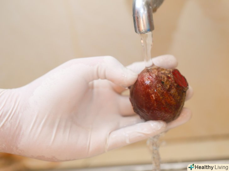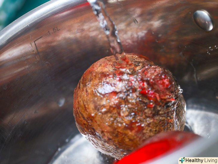 Очистіть буряк.вимийте її під проточною водою, ретельно очистіть її щіткою для очищення овочів, поки не побачите на ній більше ніякої видимої бруду. Ви також можете ретельно помити її руками.