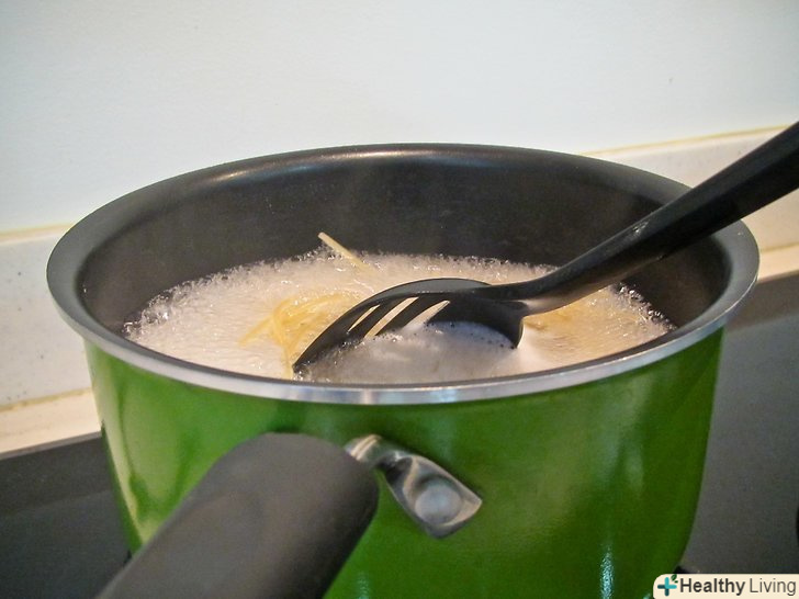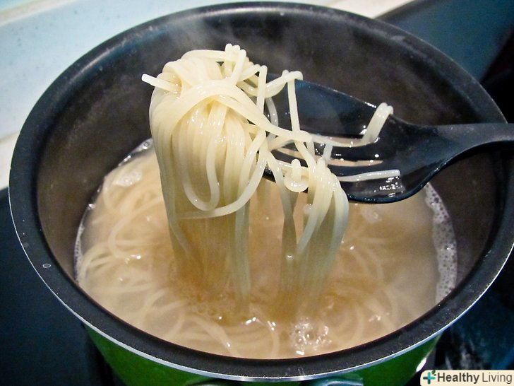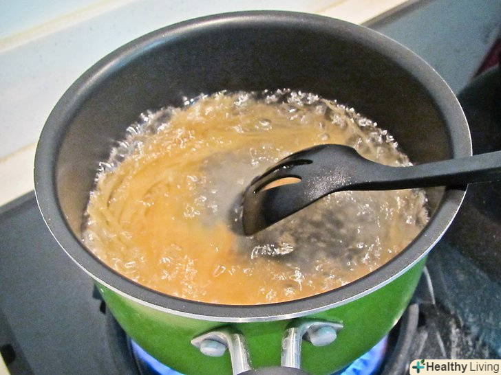 Налийте 4.7 - 5.6 літрів води в каструлю на кожні 0,4 кг. спагетті. Надлишок води також дозволить пасті швидко закипіти після додавання сухої пасти.- Використання великої кількості води надзвичайно важливо при приготуванні довгих макаронів, таких як спагетті або Феттучіні. Довгій пасті потрібен простір, щоб рухатися навколо каструлі, не прилипаючи до стінок.
