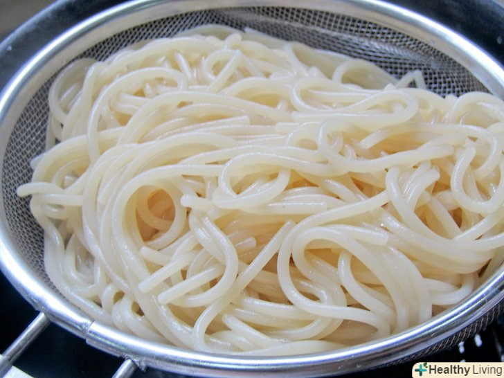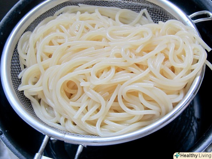 Злийте спагетті відразу ж, коли вони будуть готові.при приготуванні пасти, вона звільняє крохмаль у воду. Щоб оберегти її від прилипання, необхідно позбутися від цієї крахмалистой води відразу.