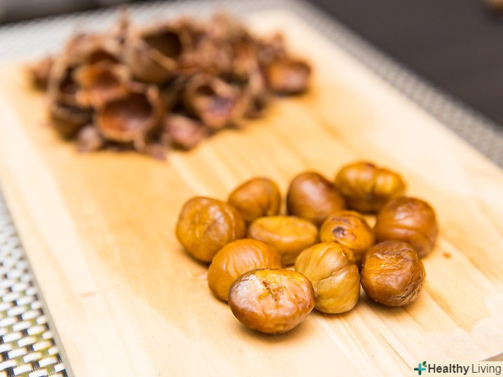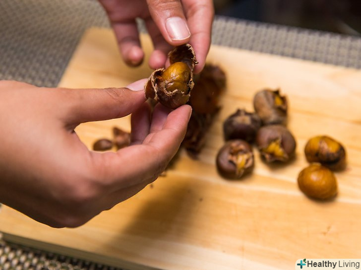 Очистіть каштани.робіть це, поки вони теплі, щоб вам було простіше. Дістаньте внутрішню оболонку разом зі шкаралупою. Якщо будь-які каштани погано піддаються очищенню, ви можете підігріти їх протягом ще декількох хвилин до готовності.