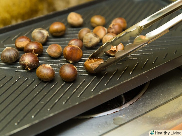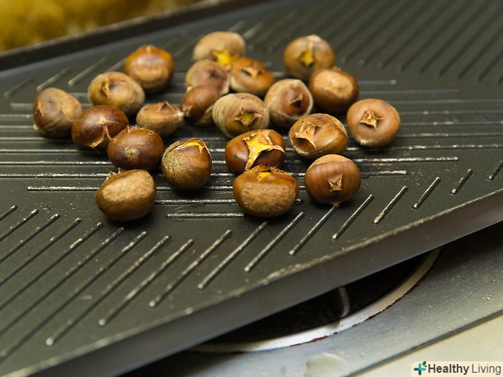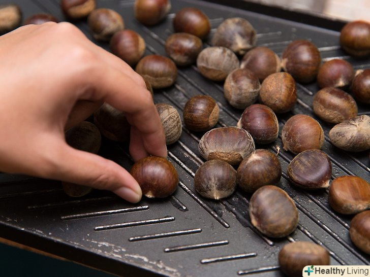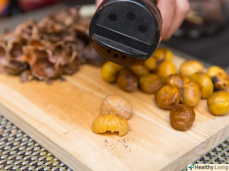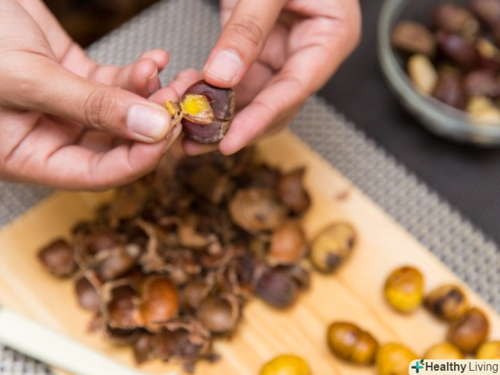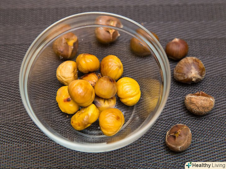 Дайте каштанам охолонути.зачекайте 2-3 хвилини, перш ніж продовжувати роботу з горіхами.