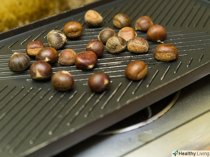 Покладіть каштани в чавунну сковороду.покладіть їх плоскою стороною вниз.