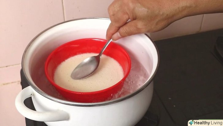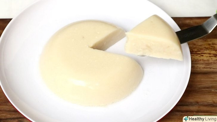 Приготуйте згусток.розмішайте нігарі в чашці з водою. Продовжуйте розмішувати суміш, поки згущувач повністю не розчиниться.- Додайте згущувач до соєвого молока.Налийте обидва інгредієнти в миску і акуратно розмішайте їх дерев'яною ложкою. Не змішуйте занадто сильно, інакше суміш вийде з грудками.