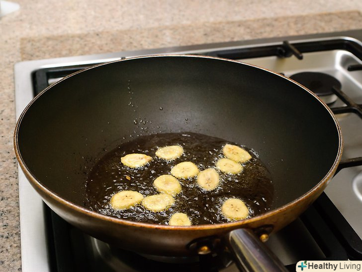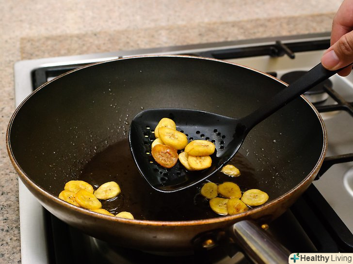 Нагрійте масло.кладіть банани в масло невеликими порціями і обсмажуйте їх протягом 2 хвилин, або поки вони не стануть золотистого кольору.