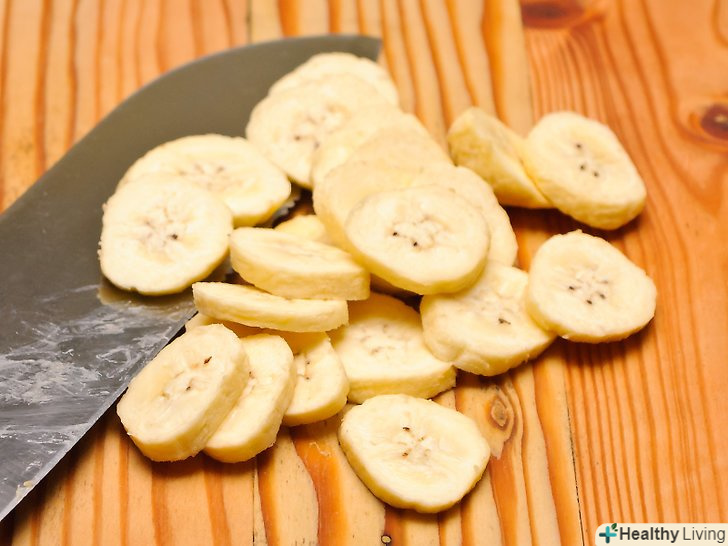Очистіть банани.наріжте їх рівними тонкими скибочками. Врахуйте, що чим тонше, тим краще.