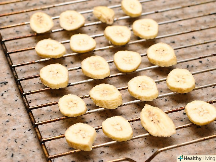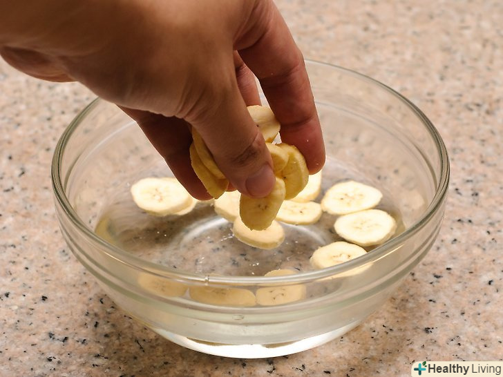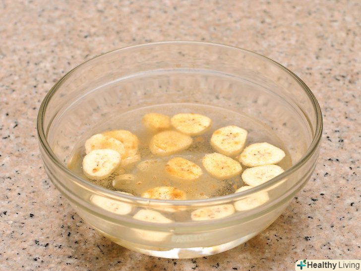 Потримайте банани у воді протягом 10 хвилин.Затом злийте воду і покладіть кружечки на чистий рушник, щоб зберегти вологу.