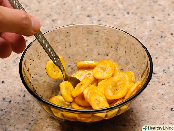Занурте смажені банани в цукровий сироп.намагайтеся, щоб сироп покрив чіпси з усіх боків.