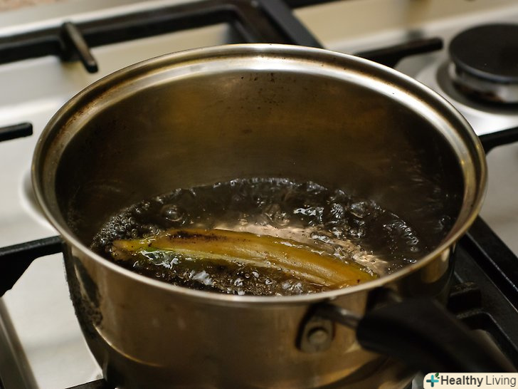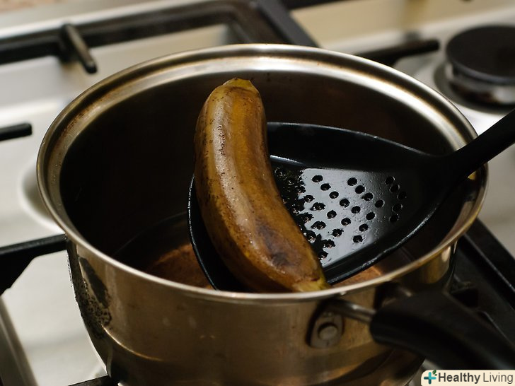Покладіть банани в шкірці і нерозрізаними в каструлю.налийте в каструлю води, щоб вона покрила банани, і варіть банани протягом 10 хвилин.