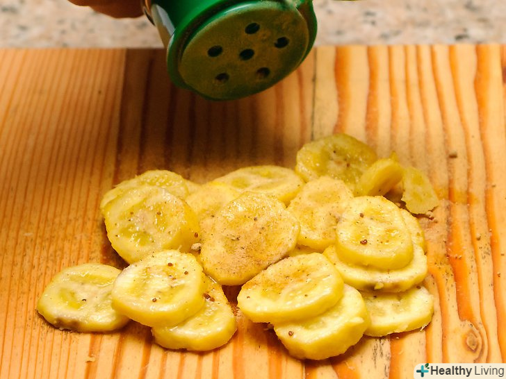 Полийте банани оливковою олією і посипте їх куркумою. Посоліть за смаком.