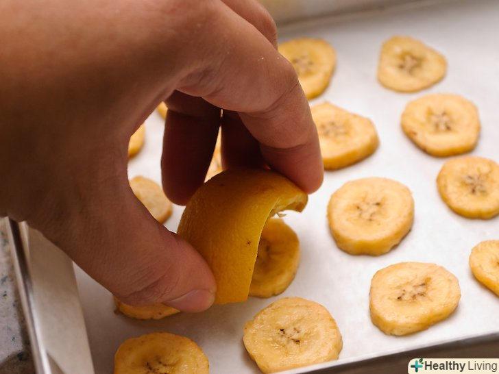 Вийміть деко з духовки. Дайте чіпсам охолонути. Швидше за все, бананові чіпси будуть ще м'якими і соковитими, але вони затвердіють у міру охолодження.