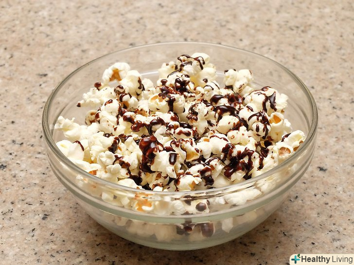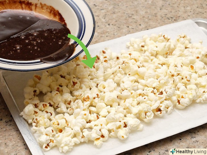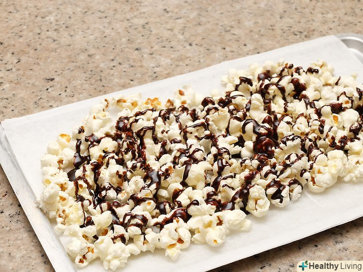 Вилийте шоколад на деко з попкорном.викладіть попкорн на деко, покритий пергаментним папером.[7] полийте його шоколадом.