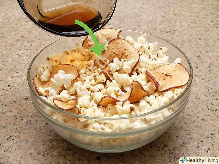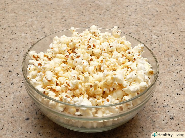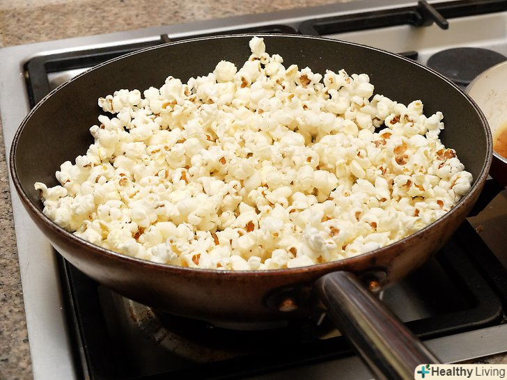 Приготуйте попкорн як зазвичай.покладіть зерна на плиту (дивіться вище) або використовуйте пакет для попкорну. Використовуйте неароматизований попкорн, так як масло ви додасте пізніше.
