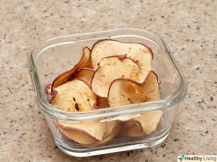 Купуйте або приготуйте яблучні чіпси .купуйте пакет сушених яблучних чіпсів і відміряйте близько 1 склянки (120 г). Якщо хочете, можете приготувати їх самостійно з будь-якого солодкого сорту яблук (підійде майже будь-який червоний сорт яблук):- Наріжте яблуко тонкими скибочками однакової товщини.