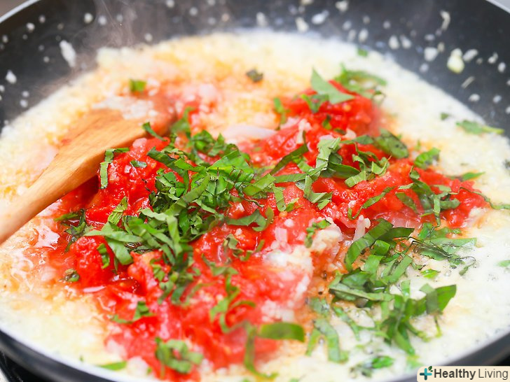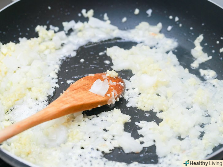 Додайте подрібнений часник і цибулю і готуйте протягом 3-4 хвилин.Лук повинен стати напівпрозорим або світлим по краях.- Ви можете додати подрібнений перець для гостроти або дрібно нарізану моркву і селеру для солодощі.