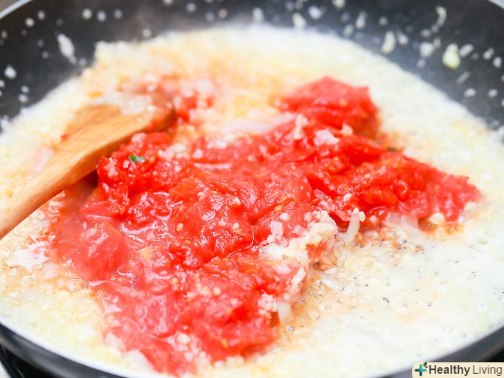 Додайте консервовані томати.якщо ви хочете отримати більш однорідний соус, використовуйте тільки перетерті помідори.