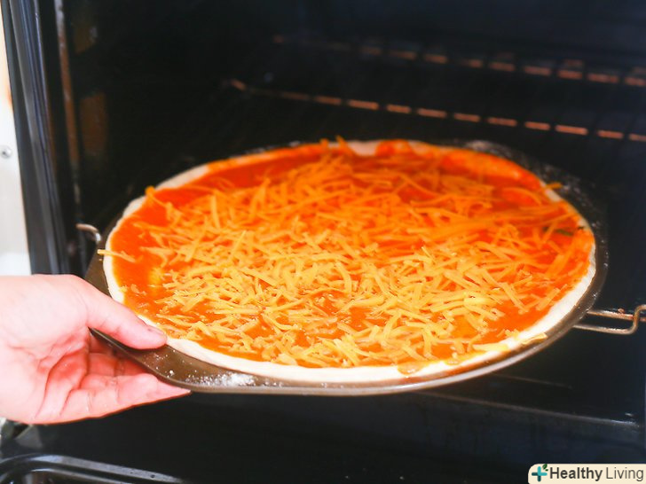 Готуйте тісто на поверхні, до якої воно не прилипає.якщо ви будете готувати піцу на камені, посипте борошном стільницю і покладіть на неї тісто. Якщо використовуєте звичайний деко, покладіть тісто просто так.