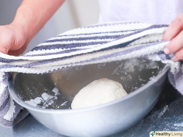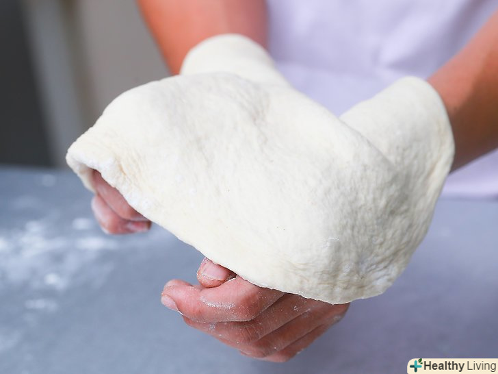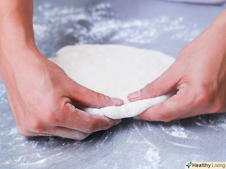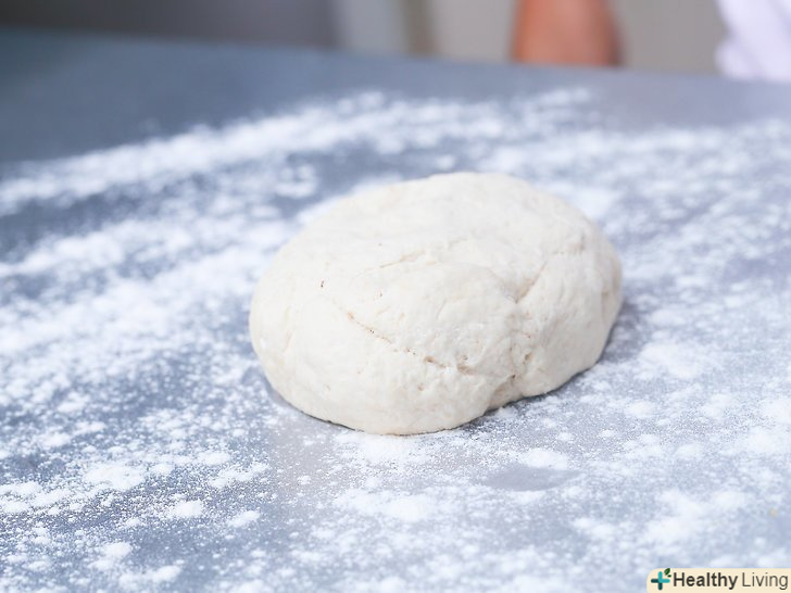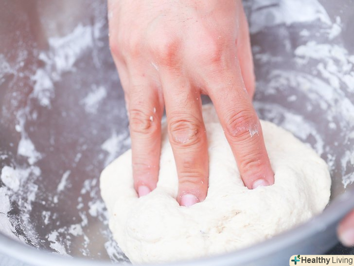 Замісіть тісто.поки тісто ще в мисці, однією рукою зберіть його в центрі ємності, а потім натисніть тильною стороною руки в його середину.- Поверніть далекий край тіста до центру, а потім повторіть рух. Продовжуйте згортати і притискати тісто 3-4 хвилини, або поки воно не почне саме по собі тримати форму.