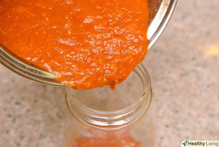 Процідіть через дрібне ситечко або марлю.- Цей крок можна пропустити, якщо вам подобається більш густий кетчуп з м'якоттю.