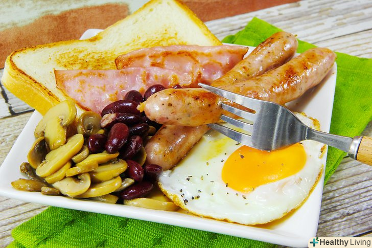 - Щоб зробити сніданок більш корисним, візьміть бекон і сосиски з індички. Якщо ви любите омлет, візьміть замінники яєць (продаються в спеціалізованих магазинах).