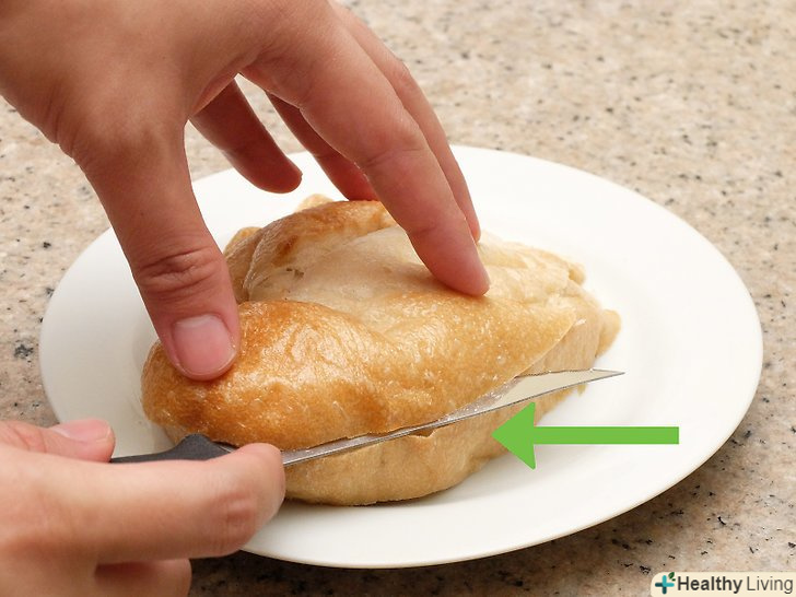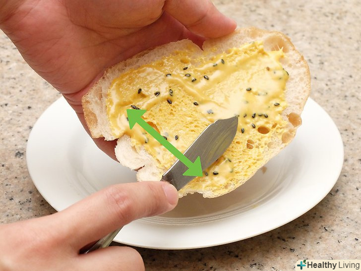Змастіть обраний вами хліб вершковим маслом.відріжте 2 шматочки хліба з хрусткою скоринкою; добре підійде французький хліб. Змастіть розм'якшеним вершковим маслом одну сторону обох шматочків хліба.- Щоб сендвіч вийшов ще смачніше, замініть вершкове масло соусом песто, оливковою олією або хумусом.