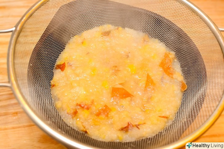 Процідіть айву.встановіть на велику миску друшляк і вистеліть його великим шматком марлі. Залийте айву в друшляк. Сік буде протікати в миску, а м'якоть залишиться всередині. Залиште м'якоть стікати протягом 4 годин.- Часто перевіряйте сік в мисці. Через 3-4 години у вас повинно бути 4-5 склянок соку, а якщо його недостатньо, змішайте м'якоть з невеликою кількістю води і знову залиште стікати.