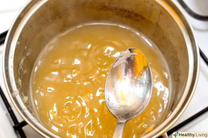 Визначте готовність желе.в процесі нагрівання желе буде міняти свою консистенцію, так як айва володіє натуральними властивостями утворення маси желе. Готове желе буде схоже на желатин, коли охолоне, а не на рідкий сік.- Перевірте готовність желе, налив трохи на охолоджену тарілку.[2] через кілька секунд доторкніться до нього. Якщо маса по відчуттях схожа на желе і надає легкий опір, вона готова. Якщо вона рідка як сік, продовжуйте готувати.